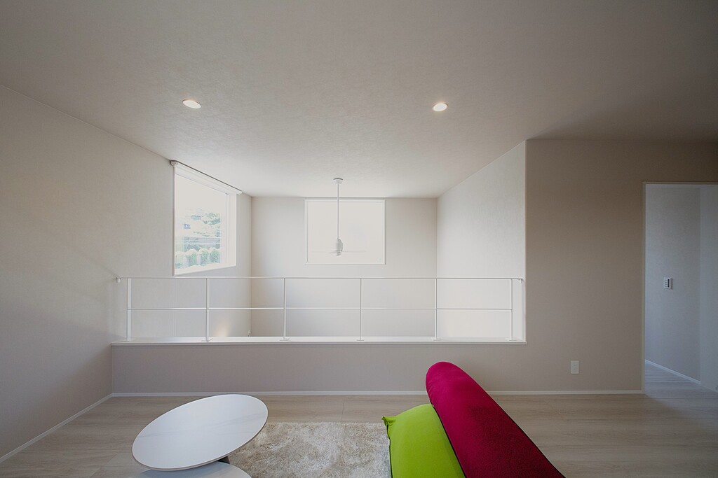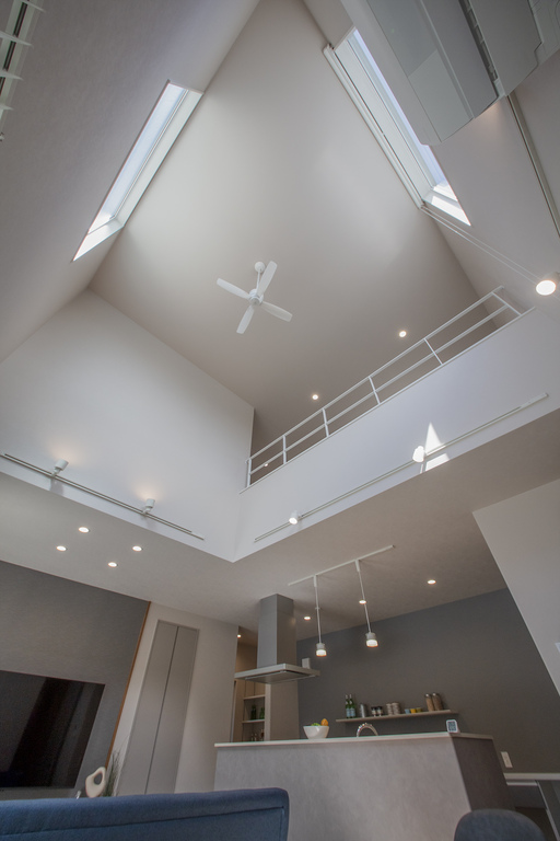 吹抜け上部に窓を設置し、明るく広々とした空間を作っています。