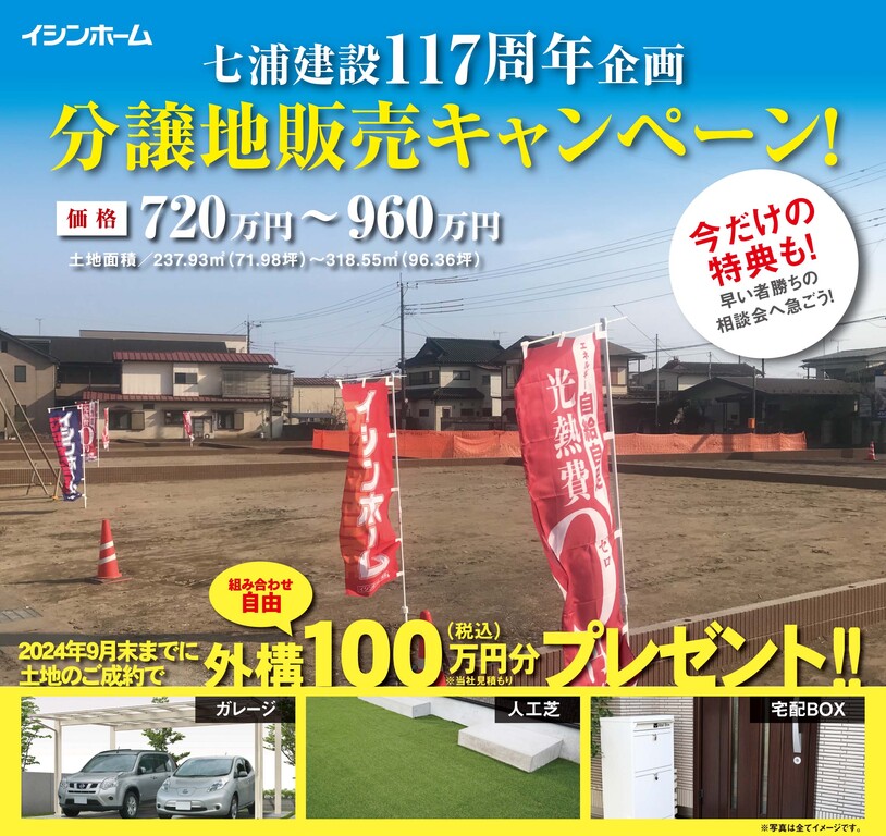 | タイトル | 七浦建設117周年企画!分譲地販売キャンペーン |