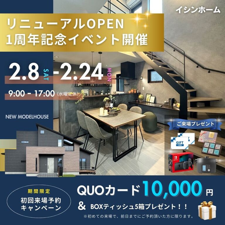 | タイトル | 2/8~24 徳島市八万町 モデルハウスOPEN1周年記念イベント開催!! |