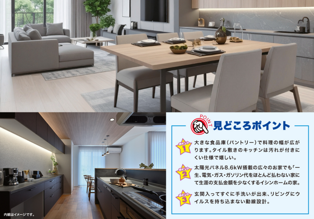 ■太陽光パネル8.6kW搭載の 広々のお家でも 「一生、電気・ガス・ガソリン代をほとんど払わない家にて 生涯の支払金額を少なくするイシンホームの家