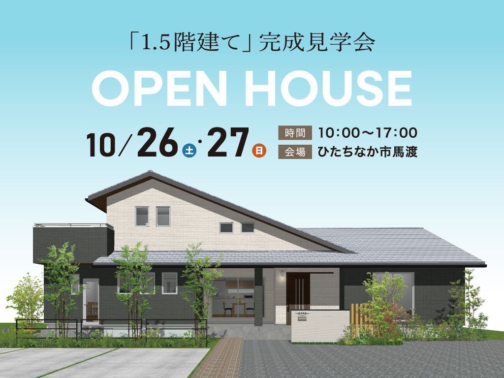 | タイトル | 「1.5階建ての家」完成見学会【ひたちなか市馬渡】 |