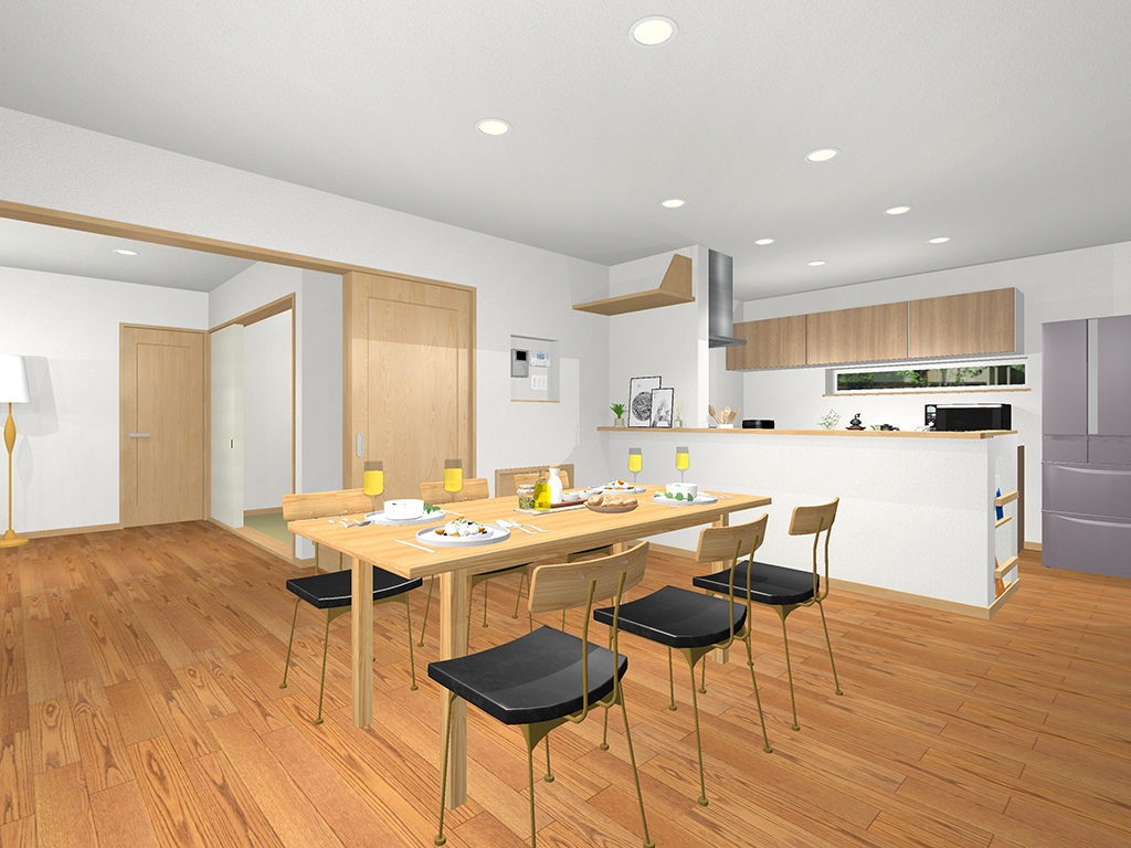 2. ゆるやかに空間を分けたダイニングキッチンとリビング