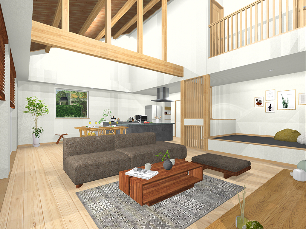 2. 段差や格子でゆるかに空間をつないだ大空間設計