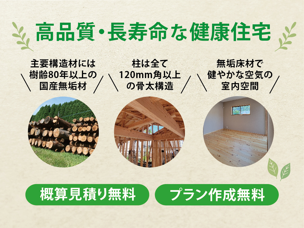原木集荷から設計・施工まで一貫した家づくりで「良質な木の家を手の届く価格で」お届け!