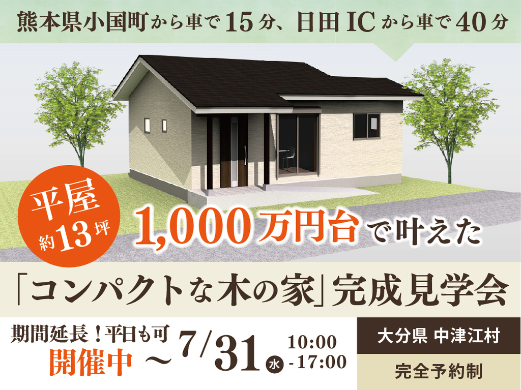 | タイトル | 【期間延長】平屋13坪のコンパクトハウス 完成見学会《大分県日田市》 |