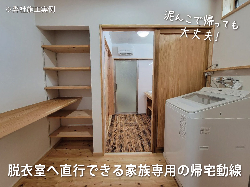 5 泥んこで帰ってきても大丈夫!脱衣所へ直行できる 家族専用の帰宅動線