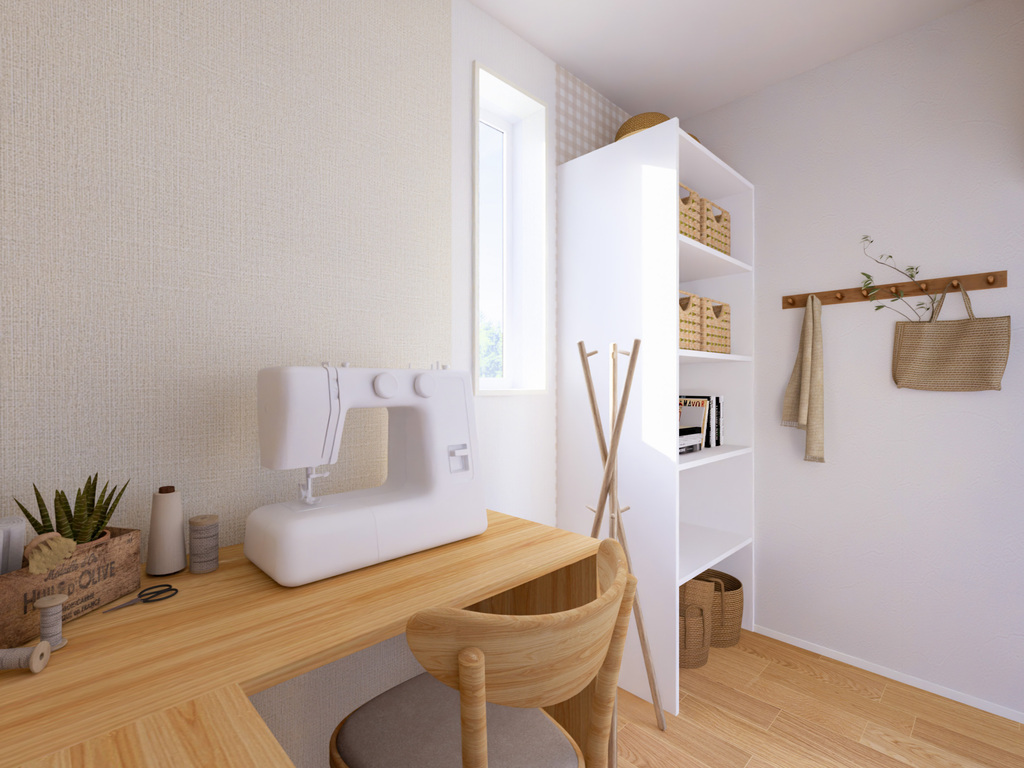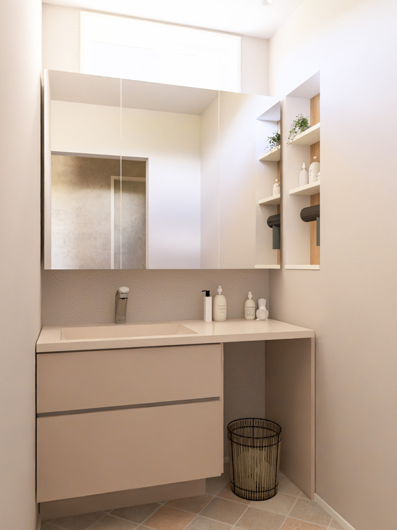 廊下を挟んで向かい側には独立洗面台を設置。忙しい朝の身支度もスムーズに行える、家族みんなに嬉しい設計です。