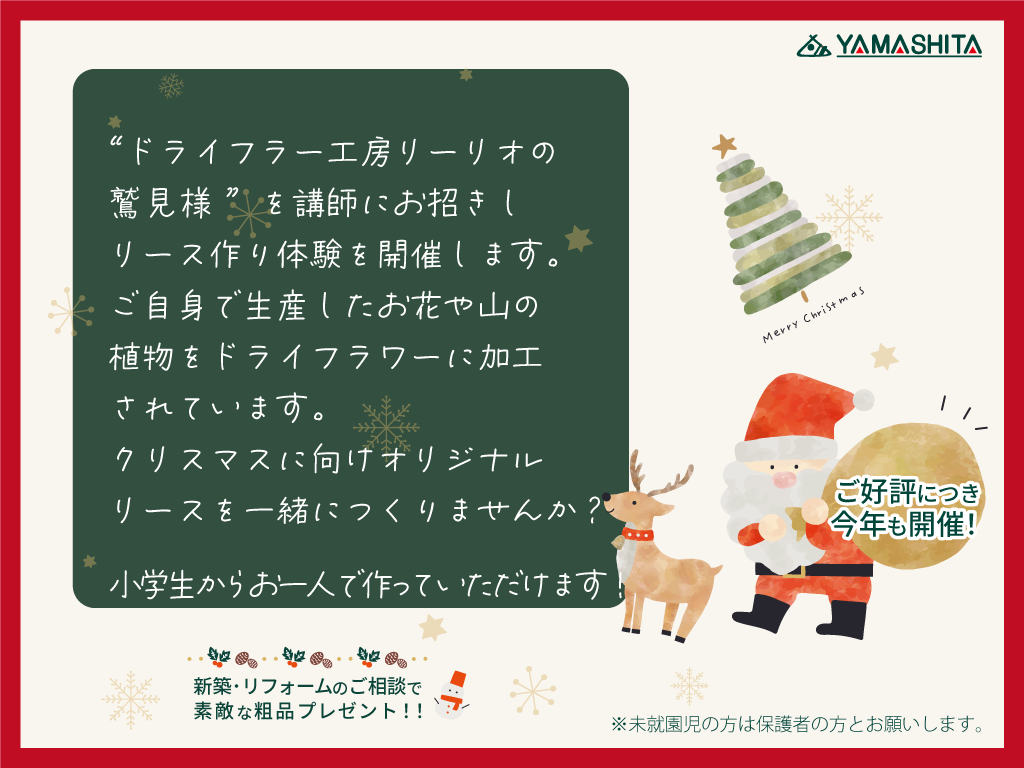 ご好評につき今年も“ドライフラワー工房リーリオの鷲見様”( @drylilio )を講師にお招きしクリスマスリース作り体験を開催します!!