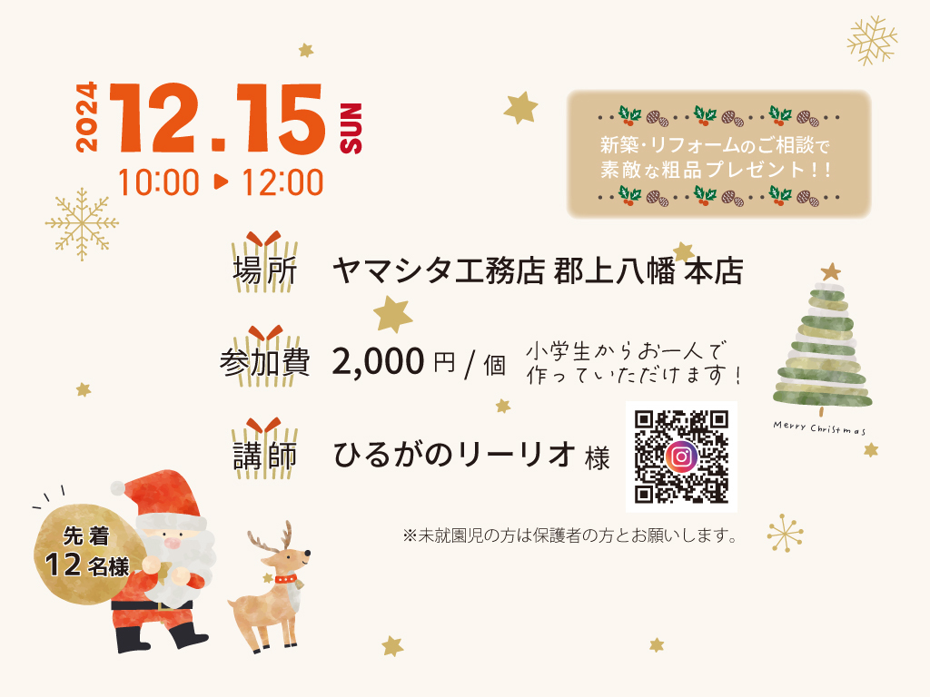| タイトル | 12/15(日)【クリスマスリース作り】 |