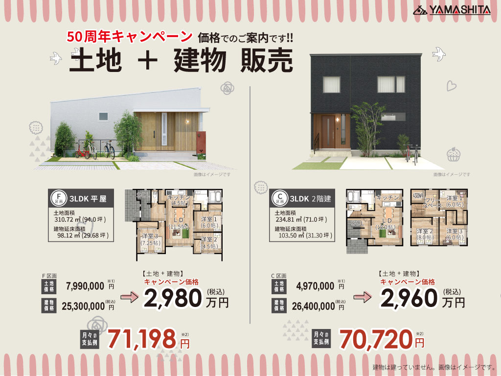 建物完成後1ヶ月間モデルハウスとしてご協力いただけることを条件に