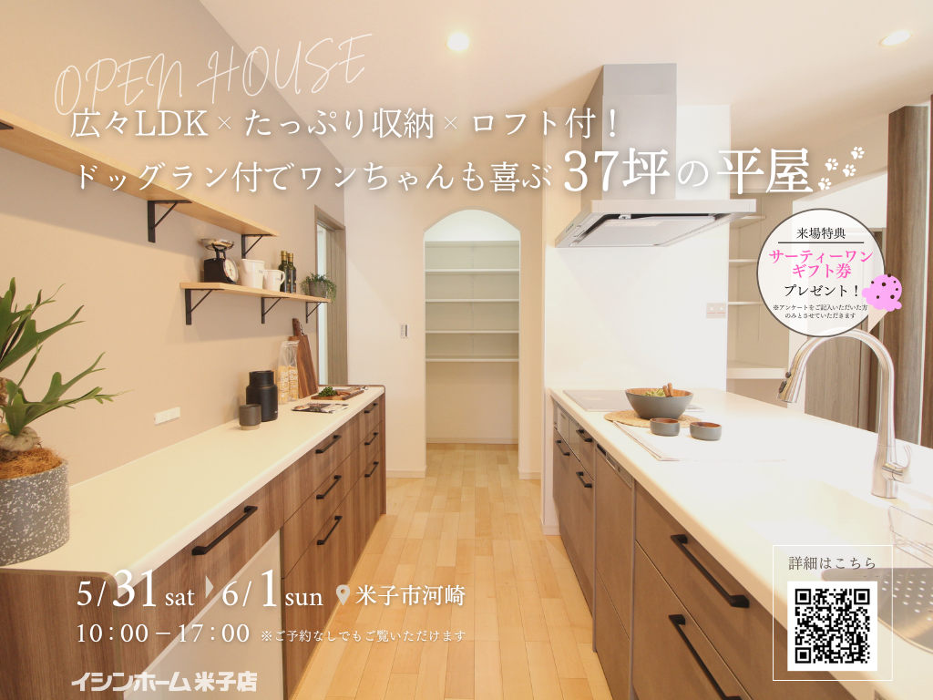 | タイトル | 【完成見学会】広々LDK×たっぷり収納×ロフト付! ドッグラン付でワンちゃんも喜ぶ37坪の平屋 |