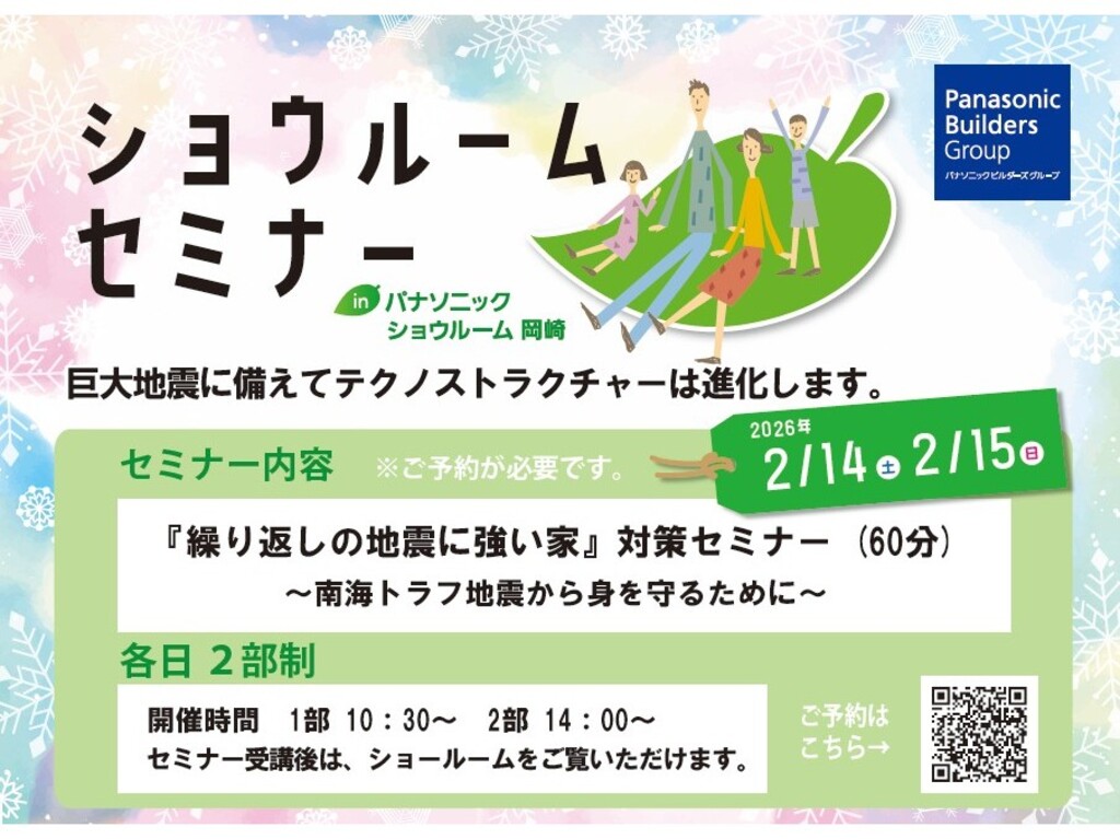 | タイトル | 【第16回】ショウルーム セミナー開催|繰り返しの地震に強い家 |