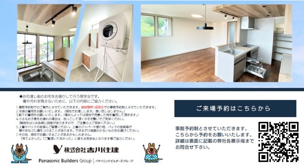お引渡し前のお客様宅をお借りして、吉川住建の実際のお家が見ていただけます。