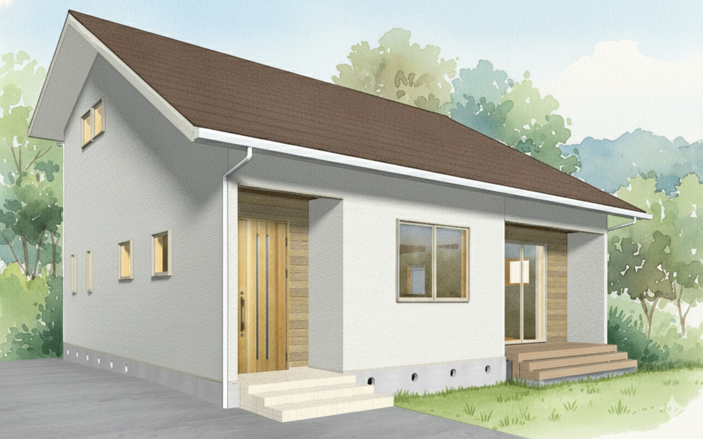 光が差し込む開放感のある1.5階建ての平屋づくり