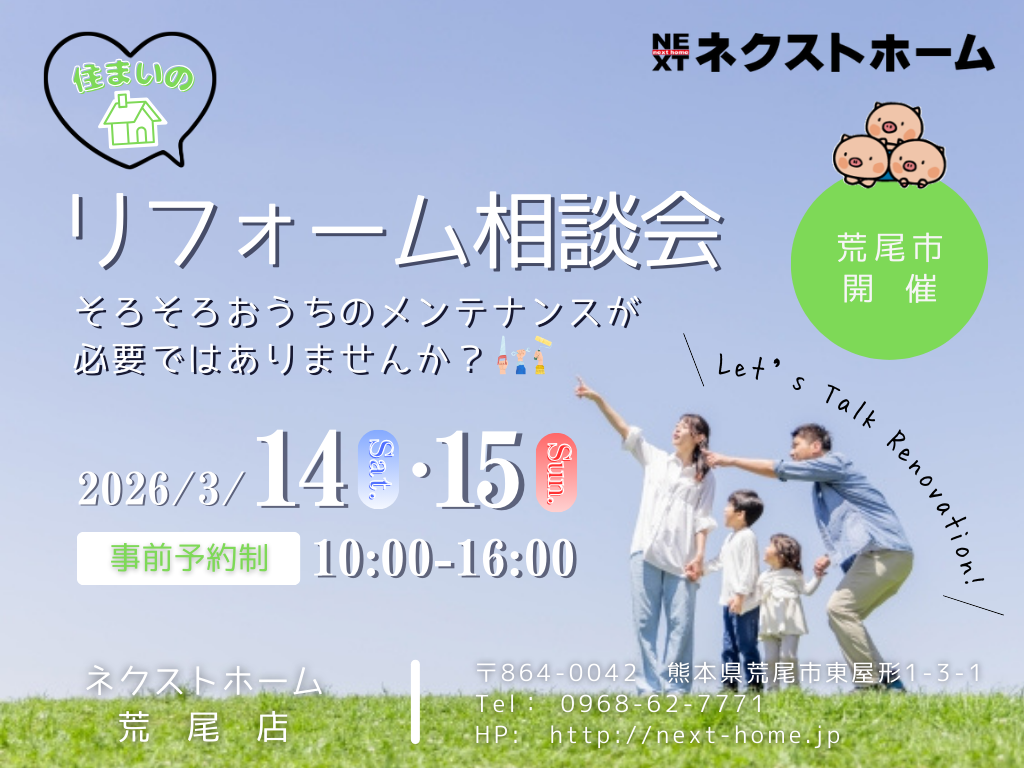 | タイトル | 熊本県内 リフォーム相談会 in 荒尾 |