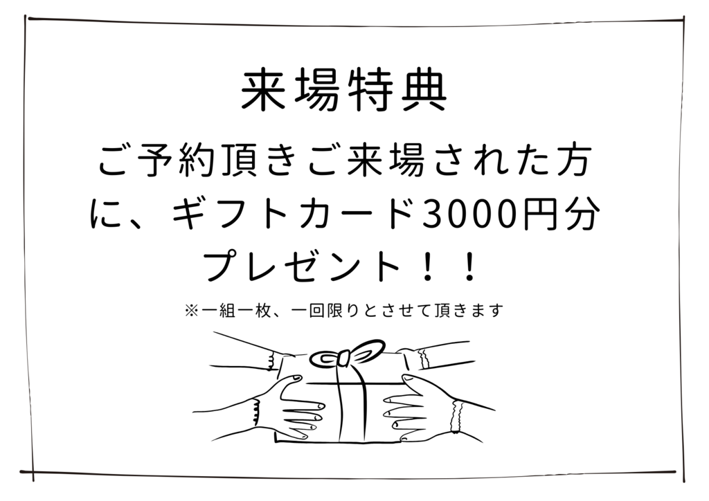 ご予約頂きご来場の方にギフトカード3000円分プレゼント!
