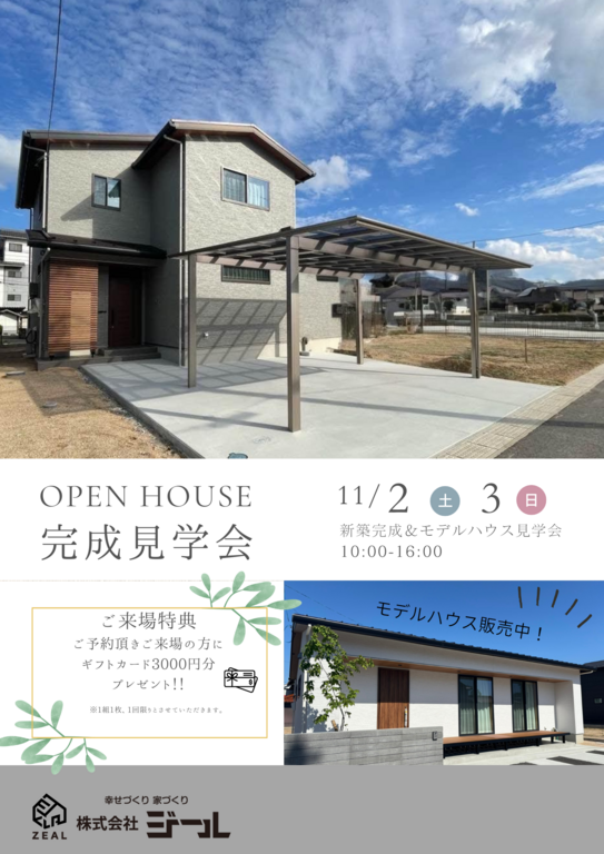 また、モデルハウスやもう1軒新築も見学可能となっておりますのでご希望の場合はご来場時にお声がけください♪